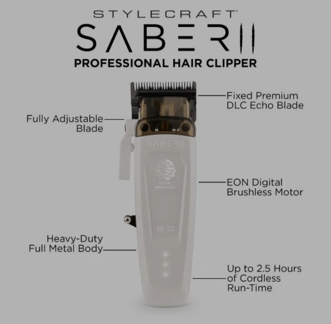 Gamma+ StyleCraft Saber 2.0 Digital Brushless Motor Clipper – White (Limited Edition)